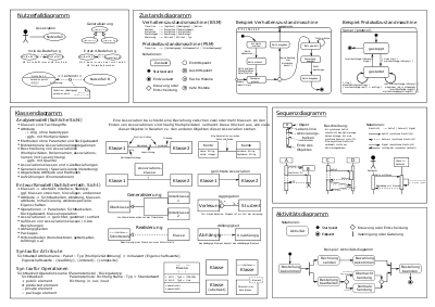 Eine der besten und prägnantesten Übersichten für die UML (Unified Modelling Language) habe ich bei Wikipedia gefunden.